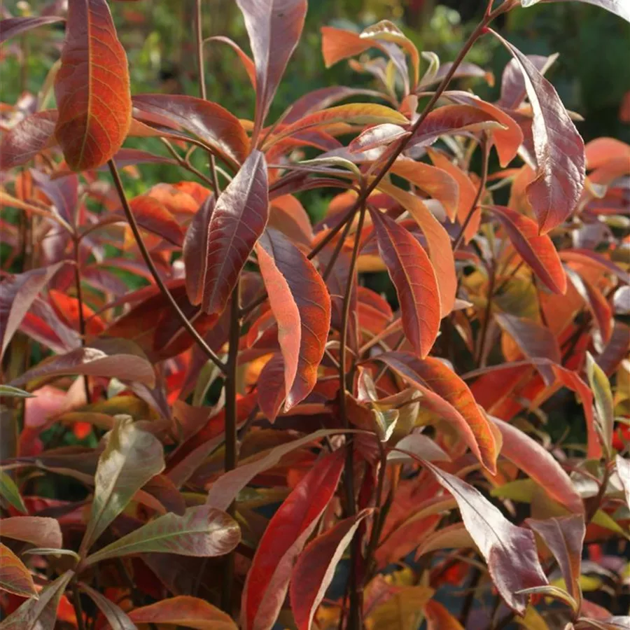 Ihre lanzettlichen Blätter sind dunkelgrün. Im Herbst verfärben sie sich prächtig orange-rot.