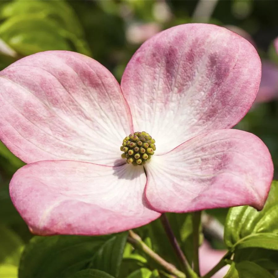 Der Japanische Blumen-Hartriegel 'Satomi'® bildet rosarote Blüten von Ende Mai bis Juni.