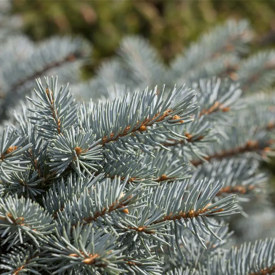 Aus Nordamerika stammen die Stechfichten und ihre Sorten. Allen gemein ist die herrliche Blaufärbung der stechenden Nadeln.Variante