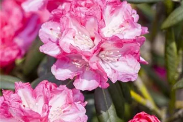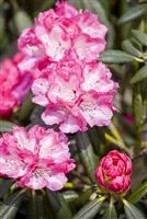 Der Rhododendron 'Rexima' (Rhododendron rex) bringt von Ende April bis Mitte Mai ein wahres Meer aus weiß-rosafarbenen Blüten hervor. Auch das immergrüne, dunkelgrüne Laub des Rhododendrons 'Rexima' ist sehr dekorativ. Dieses breit, rundlich wachsende Gehölz erreicht gewöhnlich eine Höhe von 70 - 90 cm und eine Breite von 1 bis 1,4 m. Ein halbschattiger (bis schattiger) Standort und ein humoser, kalkfreier Boden schaffen optimale Bedingungen für ein gesundes Wachstum. Der Rhododendron 'Rexima' ist gut frostverträglich.