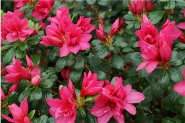 Die Japanische Azalee 'Georg Arends' bringt von Ende Mai bis Mitte Juni ein wahres Blütenmeer in Purpurrot hervor. Die bis zu 3 cm großen Blüten sind trichterförmig.