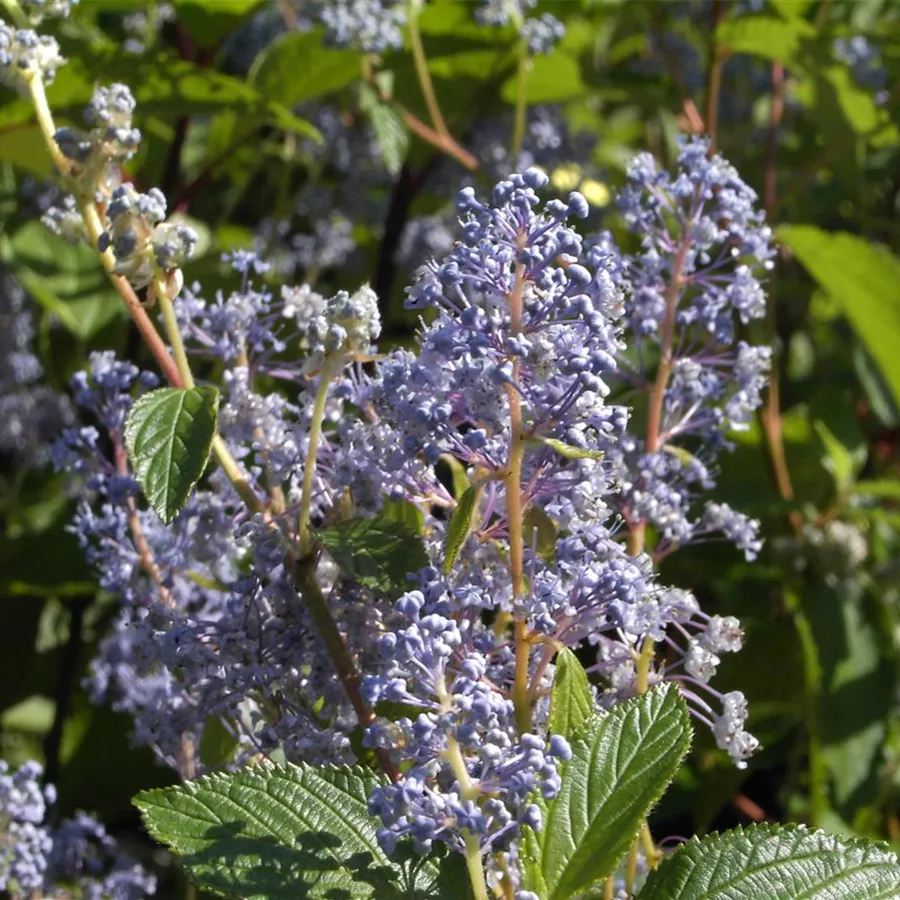 Die blauen Blüten der Säckelblume 'Glorie de Versailles' erscheinen in Rispen von Juli bis November. Die zahlreichen Blüten erscheinen am einjährigen Holz.
