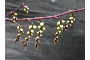 Er kommt auf allen japanischen Inseln vor. Der „Stachyurus“ wird im Deutschen oft als Schweifähre bezeichnet, und das charakterisiert ihn gut. Zwischen seinen gesägten Blättern öffnen sich im Frühling 5 bis 8 Zentimeter lange Trauben, die sich schnurstracks nach unten ausrichten. Ihre weitere Besonderheit ist, dass sie vorher im geschlossenen Zustand überwintert haben. Im Herbst kann man sie als Winzlinge entdecken. Der sommergrüne Blütenstrauch passt in japanisch inspirierte Gartenecken.
