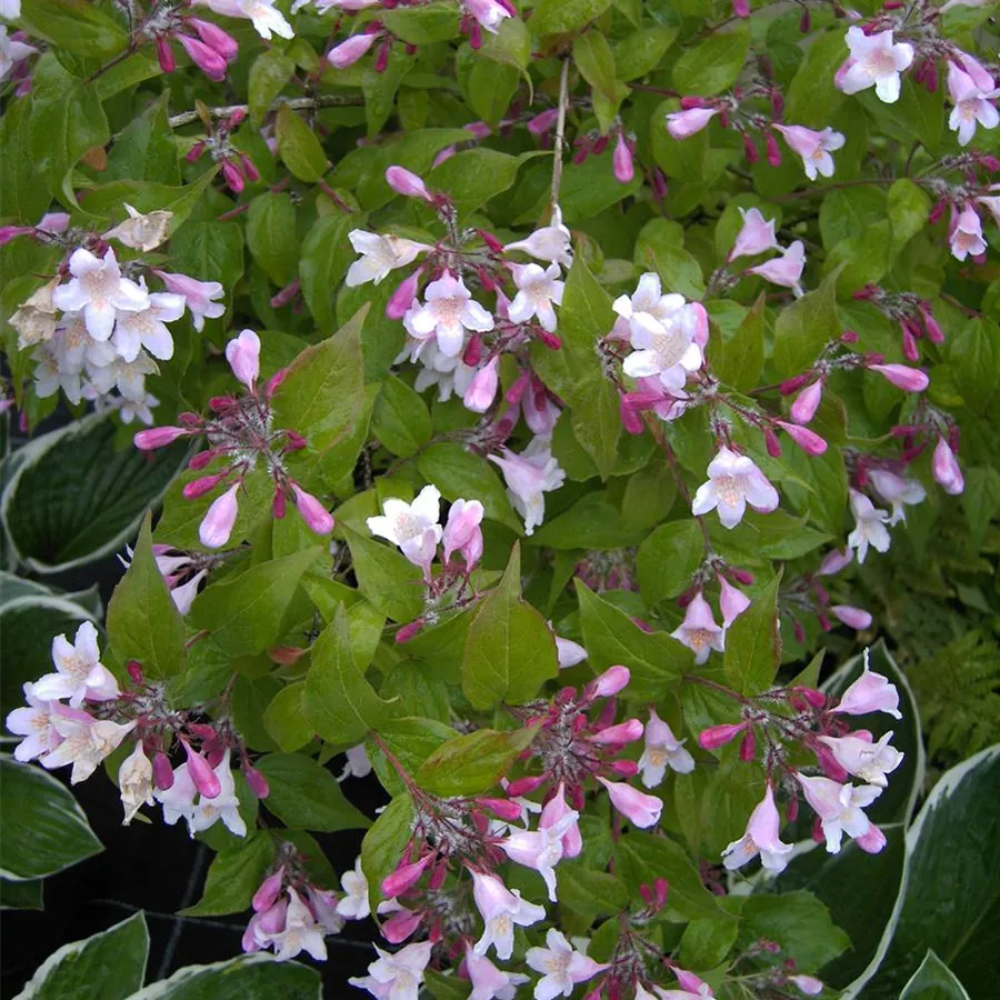Seine schimmernden, zartrosafarbenen Blüten gaben dem Perlmuttstrauch Kolkwitzia amabilis seinen Namen. Seine reiche Blütenfülle an lang herabhängenden Zweigen ist eine wahre Augenweide. Über viele Jahre hinweg entwickelt er seinen malerischen Wuchs von schlank und aufrecht in der Jugend bis ausladend überbogen im Alter. Der Perlmuttstrauch ist hochfunktional und eignet sich als Solitärstrauch in Hausgärten genauso wie als Blütenhecke.