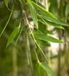 Die immergrünen Blätter des Muriel Schirmbambus sind dunkelgrün, lanzettlich.