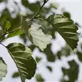 Die sommergrünen Blätter der Roterle sind dunkelgrün, rundlich, wechselständig. Diese sind etwa 4 - 10 cm groß. Lange haftend.