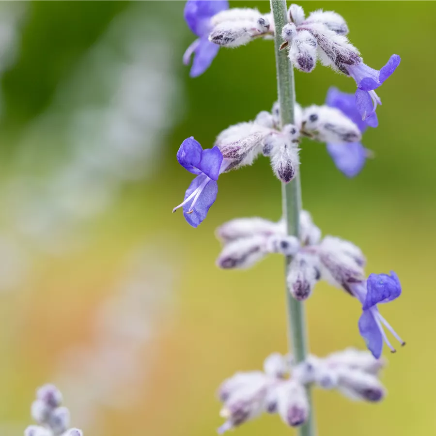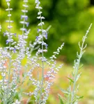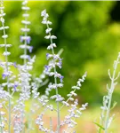Die blauen Blüten der Blauraute 'Blue Spire' erscheinen in Ähren von Juli bis Oktober. Diese sind angenehm duftend.