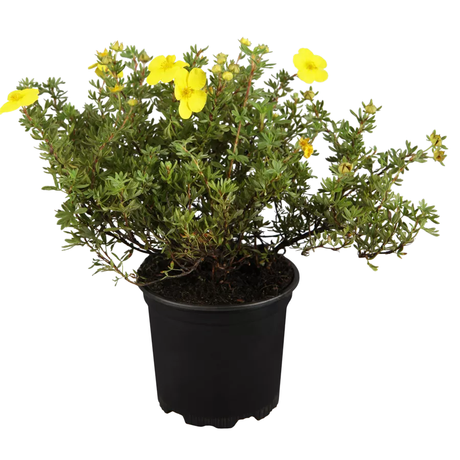Der Gemeine Fingerstrauch (Potentilla fruticosa) ist ein buschiger, breiter Kleinstrauch, der gelbe, schalenförmige Blüten hervorbringt. Sie erscheinen von Juni bis Oktober. Zudem trägt der Gemeine Fingerstrauch, gefingerte, dunkelgrüne Blätter. An einem sonnigen bis halbschattigen Standort mit durchlässigem, nährstoffreichem, schwachsaurem Boden erreicht er gewöhnlich eine Höhe von ca. 1,5 m und wird ca. 1,5 m breit.