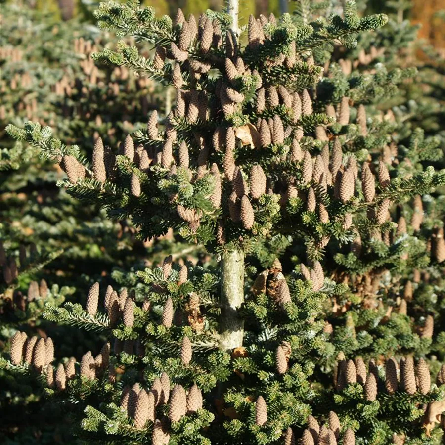 Abies koreana "Tropfstein" ist eine Auslese unserer Baumschule. Schmaler und geschlossener Wuchs und schon als junge Pflanze mit starkem Zapfenansatz. Die Nadeln sind kürzer als bei der Art.