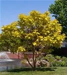 Ihre herzförmigen Blätter sind grüngelb. Im Herbst verfärben sie sich prächtig gelb. Goldgelb im Austrieb.