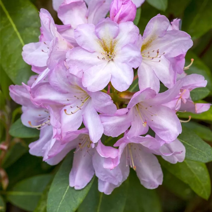 Die Rhododendron-Hybride 'Paola' ist ein kompakter und langsam wachsender Solitärstrauch mit einer Endhöhe von ca. 130 cm. Seine charmant rosa schimmernden Blüten haben eine feine braune Innenzeichnung und blühen von Mai bis Juni. Obwohl diese Züchtung auch mit mäßig guten Bedingungen zurechtkommt, fühlt sie sich in humosen und kalkfreien Böden am wohlsten. Dies erreicht man am besten, wenn beim Einpflanzen etwas Rhododendron-Erde beigemischt wird.